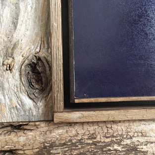 The next category of frame choice to talk about is canvas wrapped and wood canvas mounted art! Since work that is on a canvas is often dynamic, or hand painted with different textures I don't generally recommend trying to put it under glass. What I typically will do is mount the canvas or wood canvas to a painted black backer board. The client and I discuss how thick the black "boarder" should be and in the end it creates a stunning shadow box effect! Between the frame and the canvas I use my signature inserts, or trim as some people will call them. The inserts are where the subtle differences are found. I use very thin strips of barn board (with the live edge) and will try different combinations of inserts until I find the right balance of character to highlight the canvas. Below you can see examples of the black backer as well as inserts!